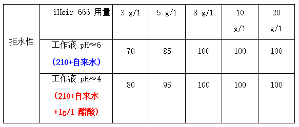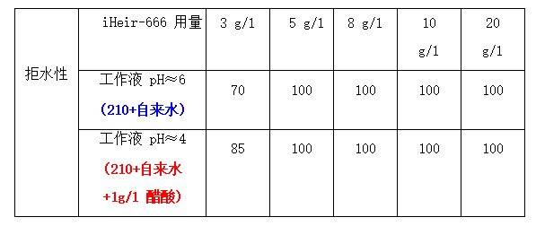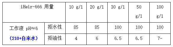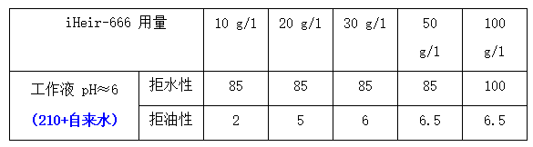5、生產(chǎn)適用性廣:iHeir-666 的拒水、拒油性能對工作液 pH 值不敏感;