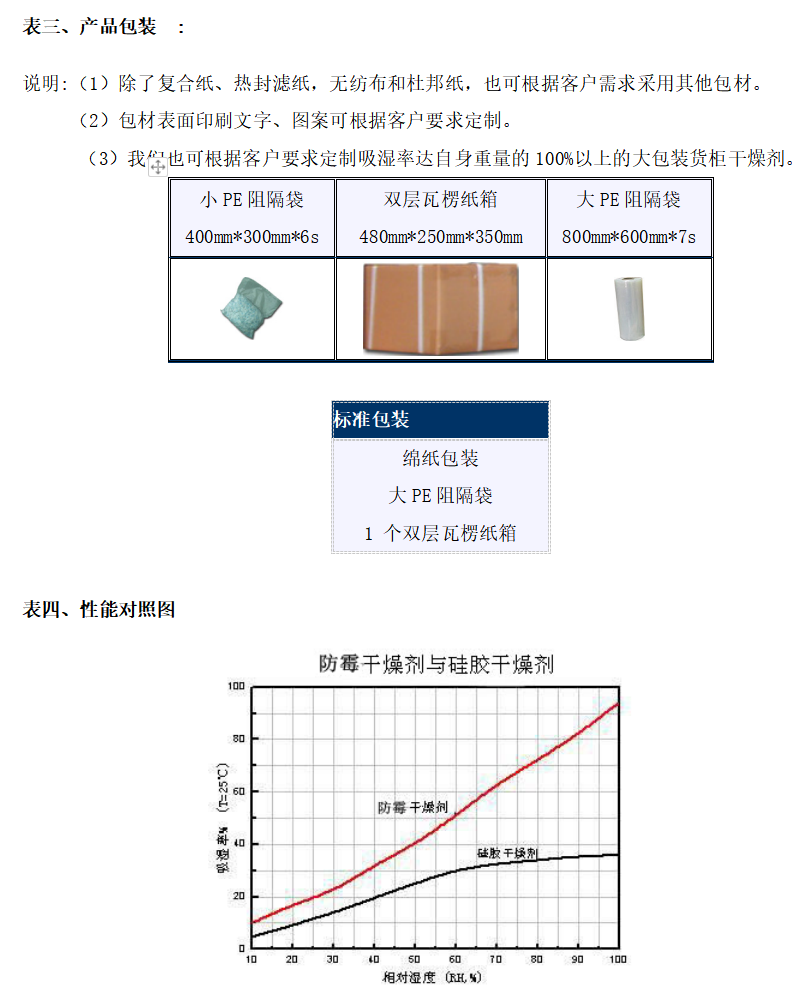 我們公司多生產(chǎn)的防霉干燥劑產(chǎn)品質(zhì)量環(huán)保干燥劑通過SIMT國家測試中心及SGS的認(rèn)證,產(chǎn)品質(zhì)量達(dá)到美國標(biāo)準(zhǔn)MIL-D-3464E及德國標(biāo)準(zhǔn)DIN-55473.相關(guān)技術(shù)表如下: